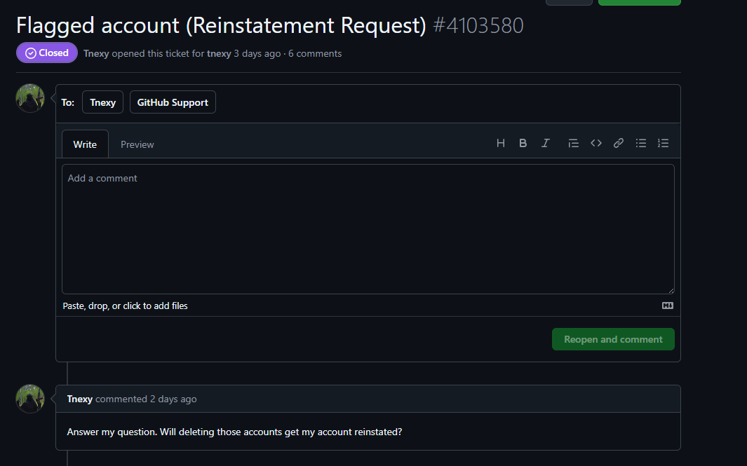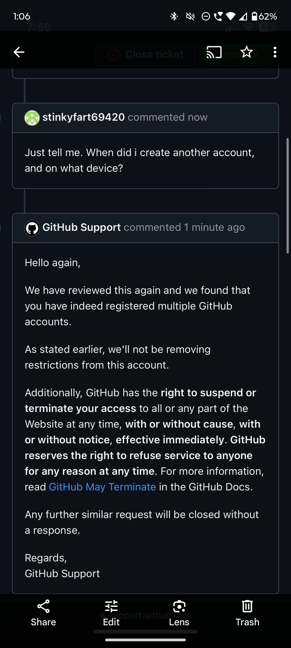 and they told him to never open a ticket again.