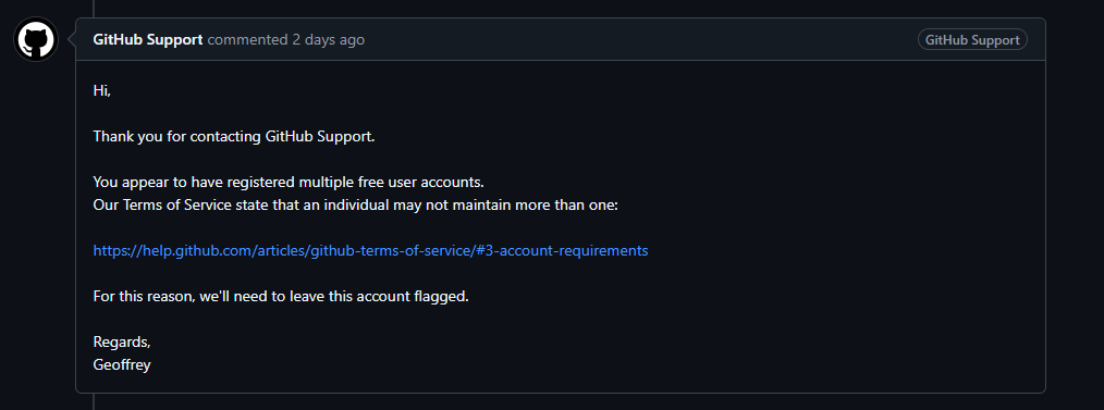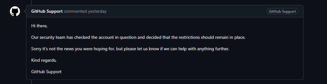 I made it clear to GitHub that I was disapointed at them